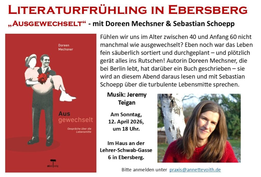 Ich bin studierter Kommunikationswissenschaftler und habe zusammen mit der Heilpraktikerin Annette Voith im Jahr 2022 das therapieHaus an der Lehrer-Schwab-Gasse 6 in Ebersberg bei München eröffnet. Sie ist dort als Heilpraktikerin und Coach tätig und bietet zusätzlich Yoga sowie Meditation an. Gemeinsam veranstalten wir Lesungen und kleine Ausstellungen sowie Seminare.